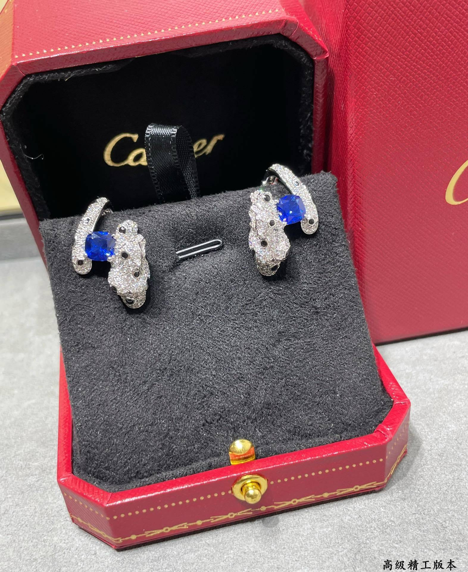 Ca*t1er Black Onyx Blue D1am0nd Leopard Earrings