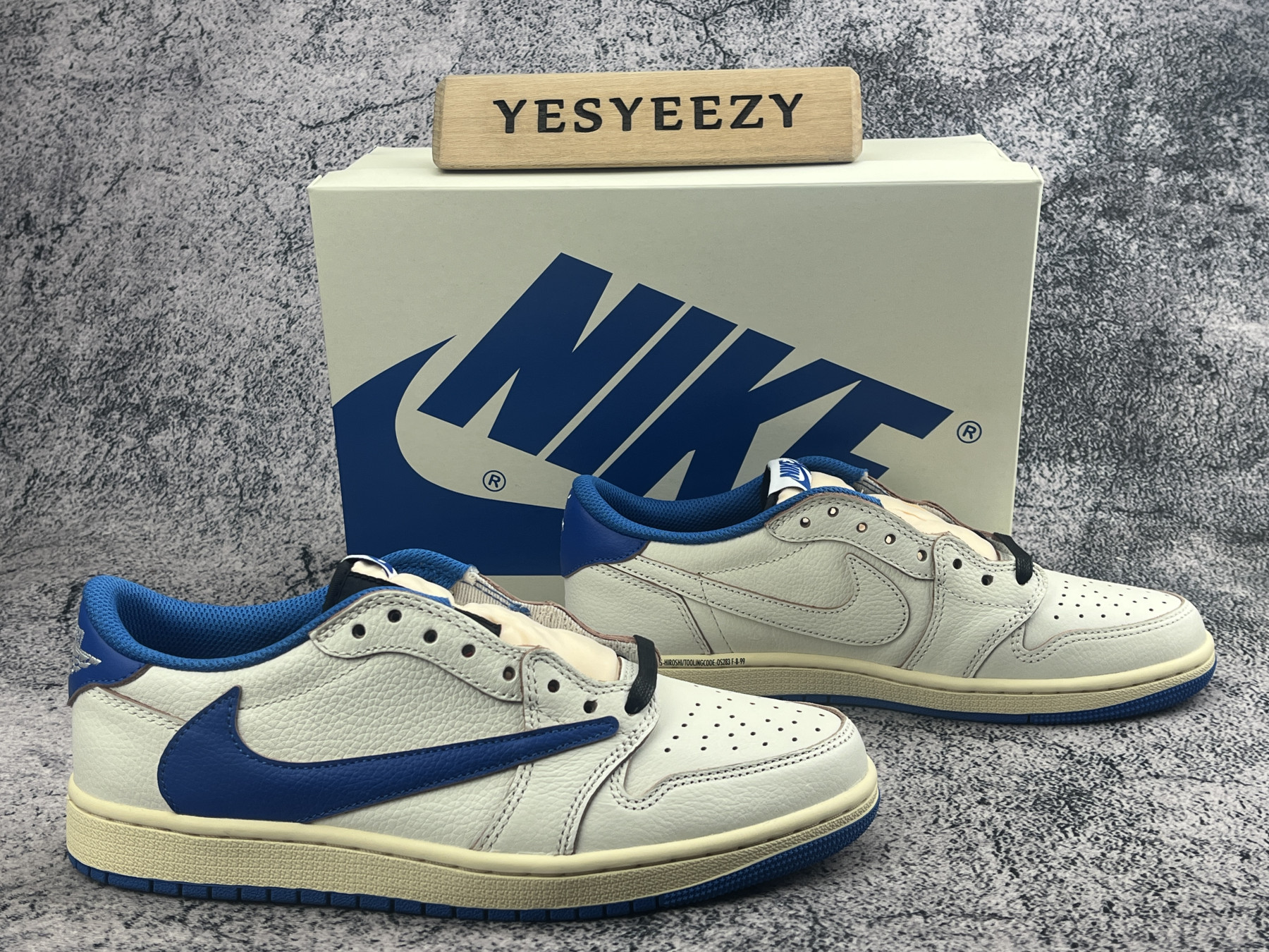 UA Air Jordan 1 Retro Low OG SP Fragment x Travis Scott Sail Military Blue